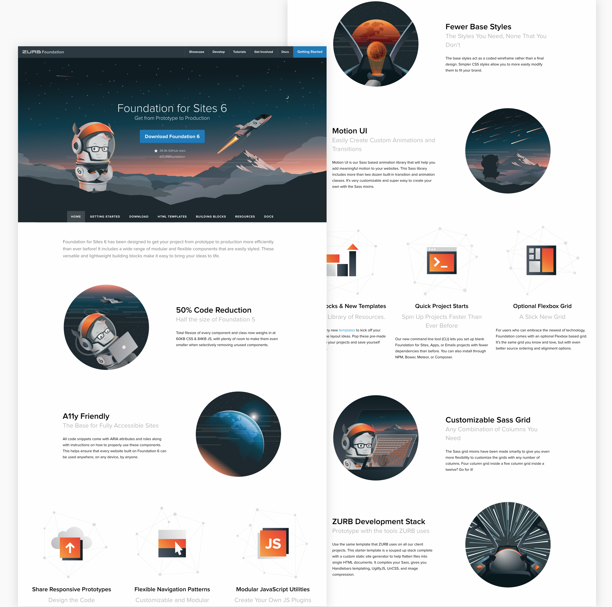 ZURB's Foundation for Sites is a highly regarded front-end framework designed to assist developers and designers in prototyping and creating responsive websites. During the development of Foundations for Sites 6, ZURB did a world tour to London, Hong Kong, Toronto, Sydney, and across the United States, engaging thousands of developers and designers to gather valuable insights. A clear theme emerged: the need for a seamless transition from prototyping to production. In close collaboration with the Foundation team, I helped design and code the marketing site, which served as a platform to showcase the new features and benefits of the framework.